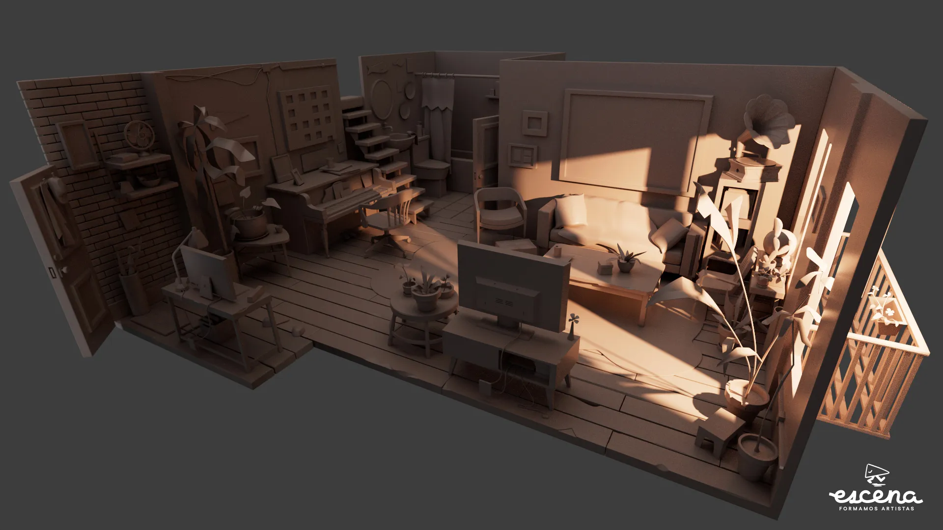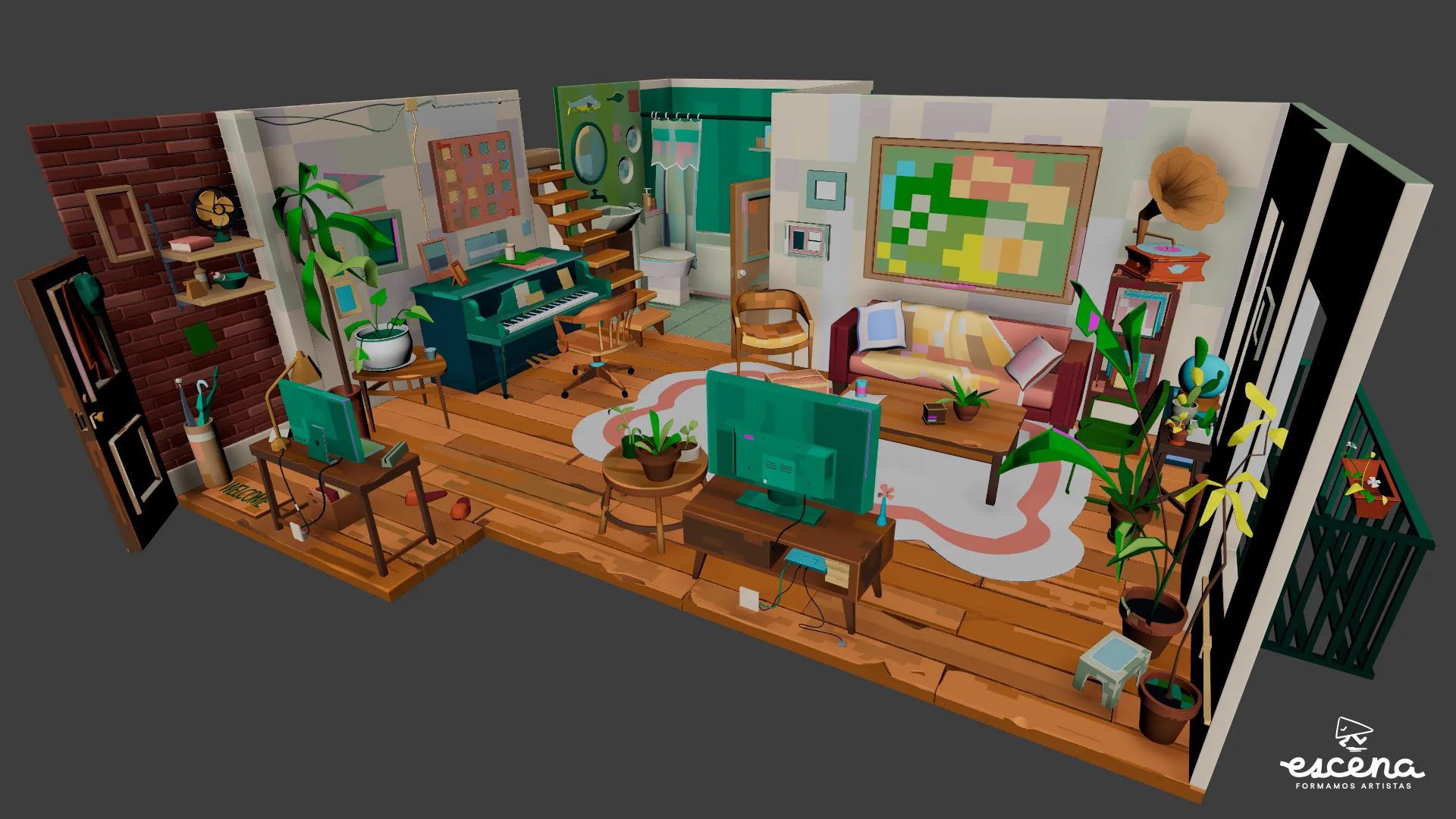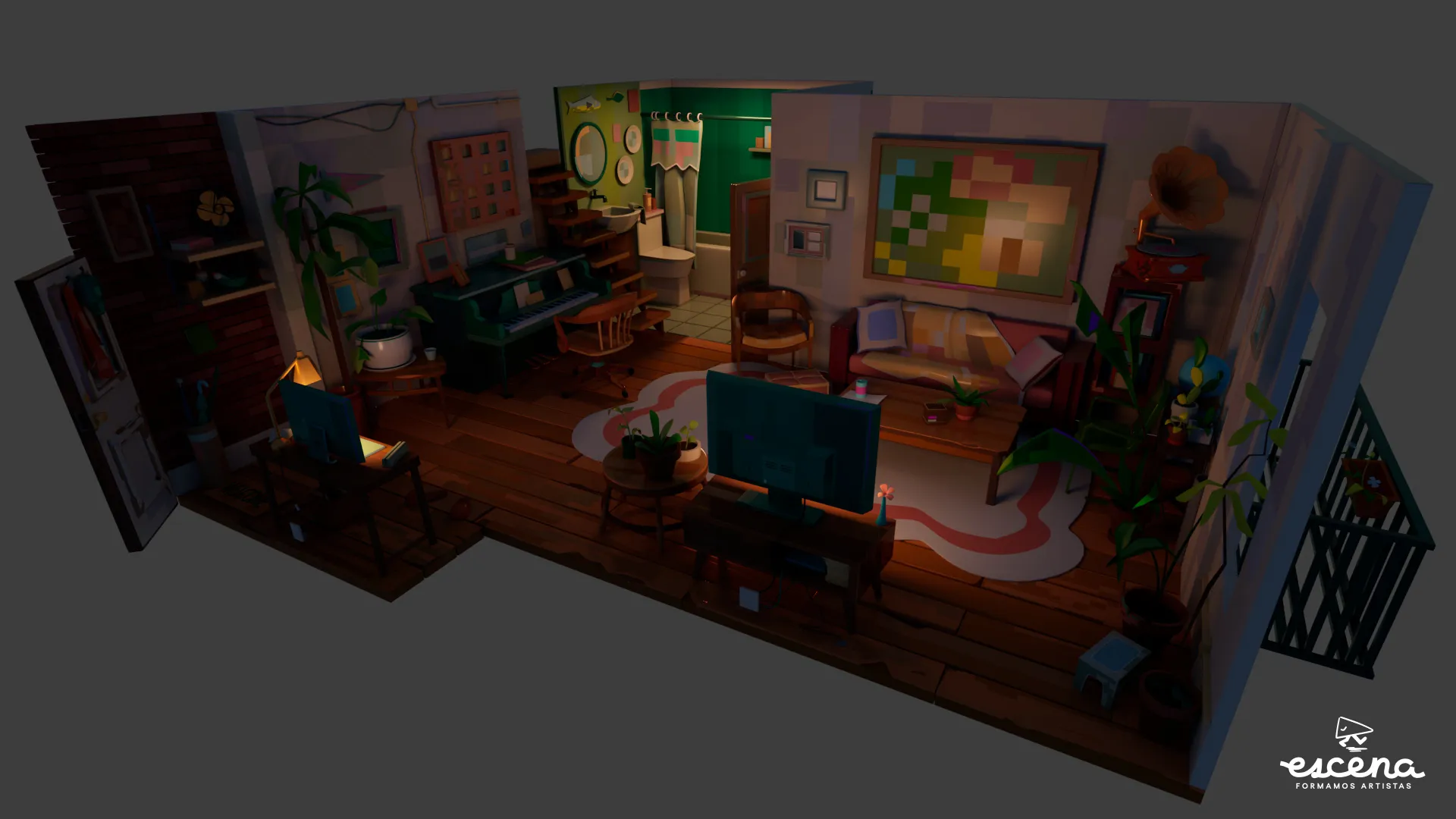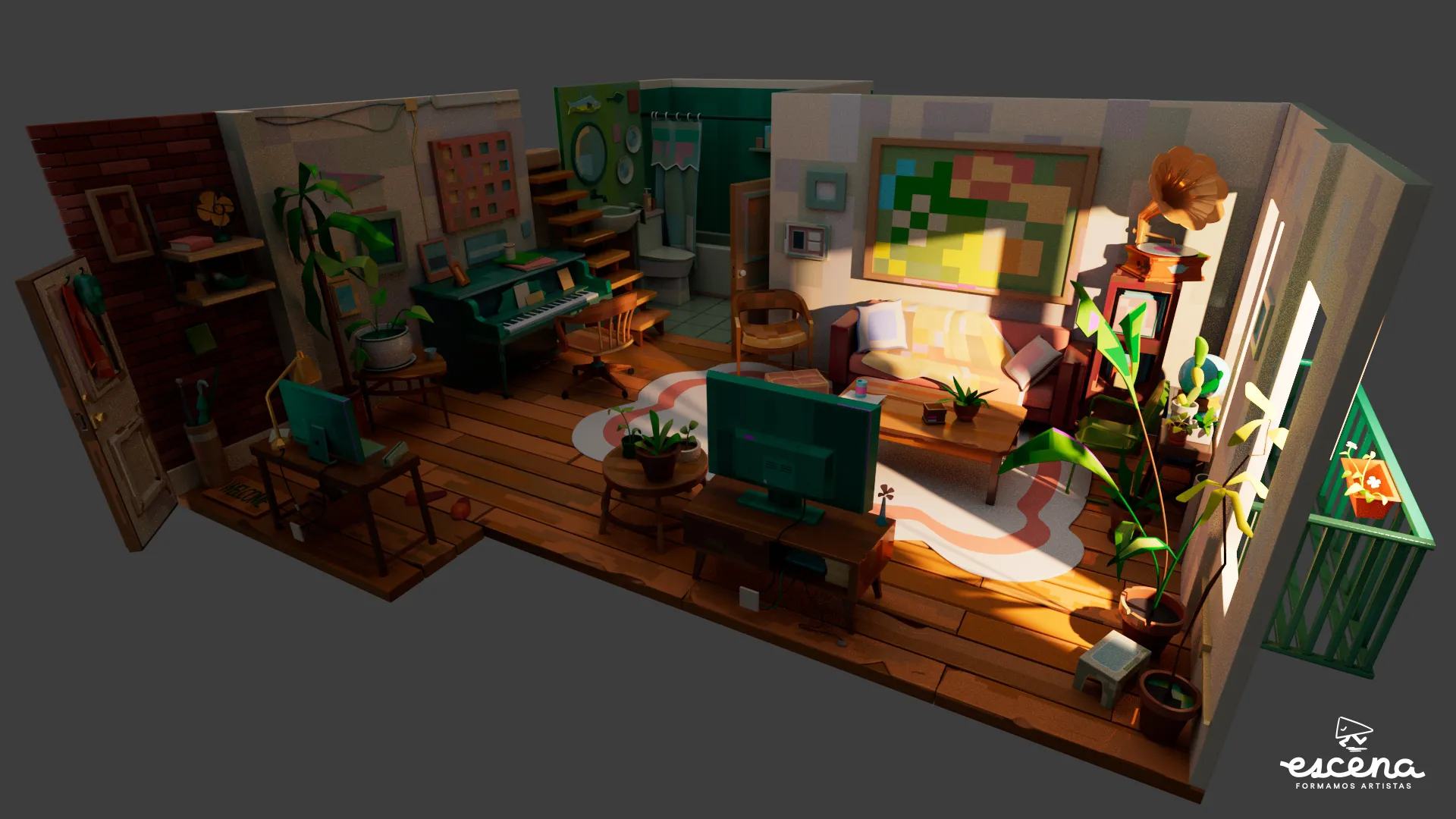 Su resultado final fue un diorama cuidado en sus decisiones técnicas, pero además, lo que destaca es la claridad con la que Natalia traza el recorrido de su proceso: partiendo de la elección del concepto hasta definir la optimización de luces con blockers, así como sus reflexiones sobre escala, color, cámara y nivel de detalle. Lo cual nos hace pensar en el pensamiento crítico y sensible que implica construir mundos en 3D.