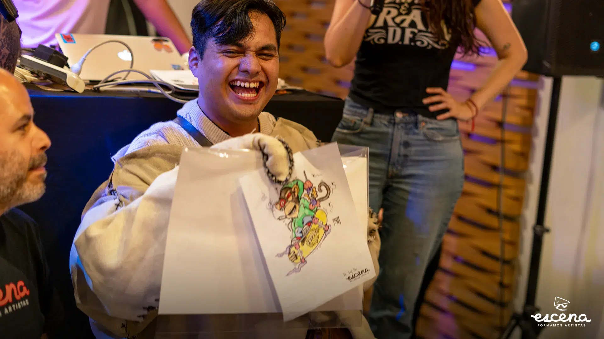 Por otro lado, ell broche de oro fue la fiesta de cierre en Ciudad de México, que reunió a la comunidad de participantes. El evento incluyó dinámicas como “Crea tu personaje”, donde los participantes ilustraron un mono andando en patineta en las micheladas de Tepito, combinando acción, lugar y animal al azar.