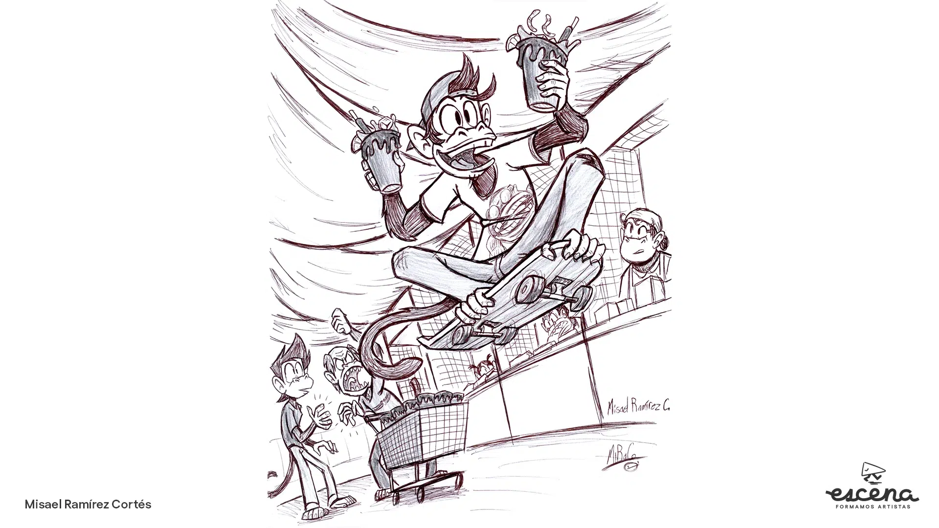 Cada artista plasmó una visión única. De entre 30 dibujos, se premiaron los tres mejores con un taller intensivo de dibujo Gimnasia plástica en Escena, impartido por David López “Deino”, profesor de Dibujo de la figura humana en Escena.