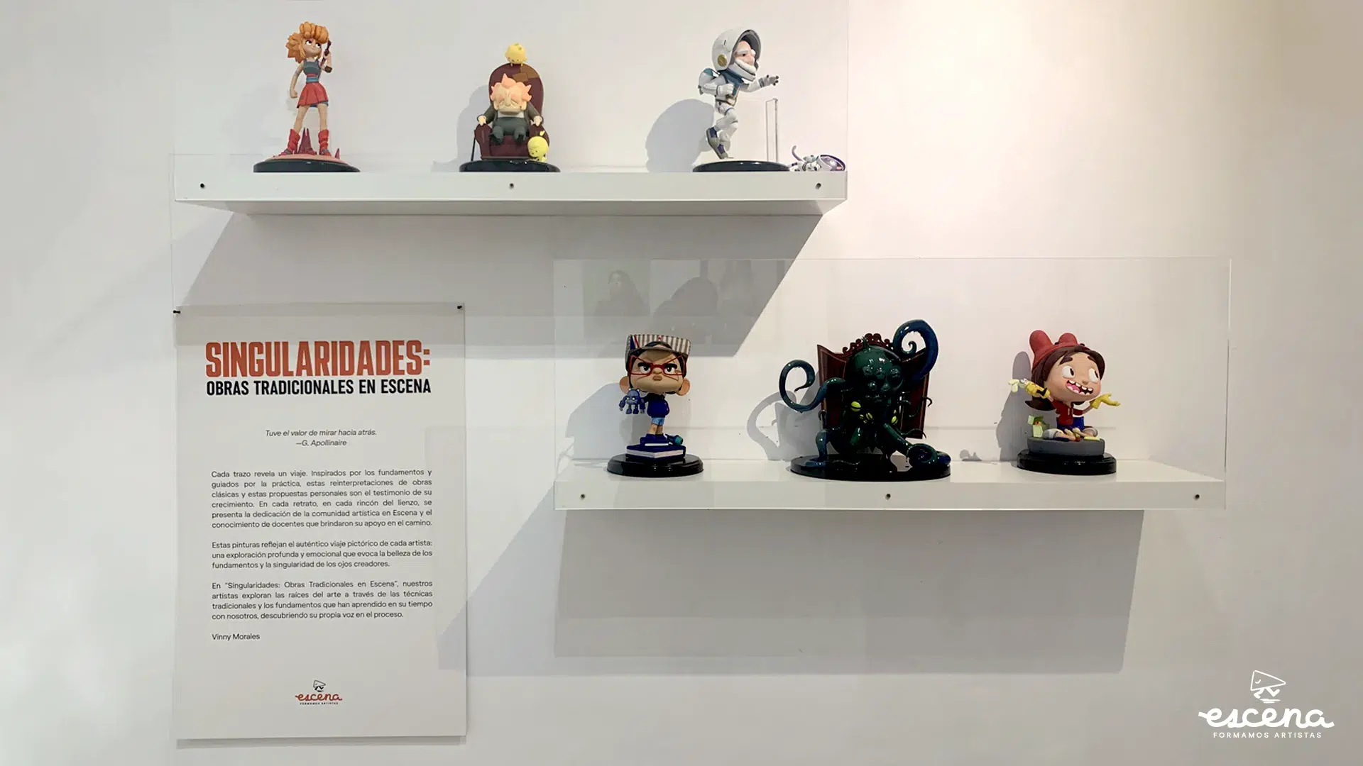 Uno de los momentos destacados se dio el miércoles 6 de septiembre, en el Centro Cultural Bretón, con la exposición «Singularidades: Obras Tradicionales en Escena». La exhibición presentó 42 pinturas y dibujos de estudiantes de Escena, así como esculturas conmemorativas de los cortometrajes de titulación, realizadas por el talentoso Enrique Zarazúa. El evento reunió a 260 asistentes, incluyendo a profesionales y amantes de la animación, la cinematografía y la publicidad. La presencia de figuras destacadas como Phil Lord y Christopher Miller, productores y escritores de «Spider-Man: Across the Spider-Verse,» resaltó aún más la importancia de esta exhibición.