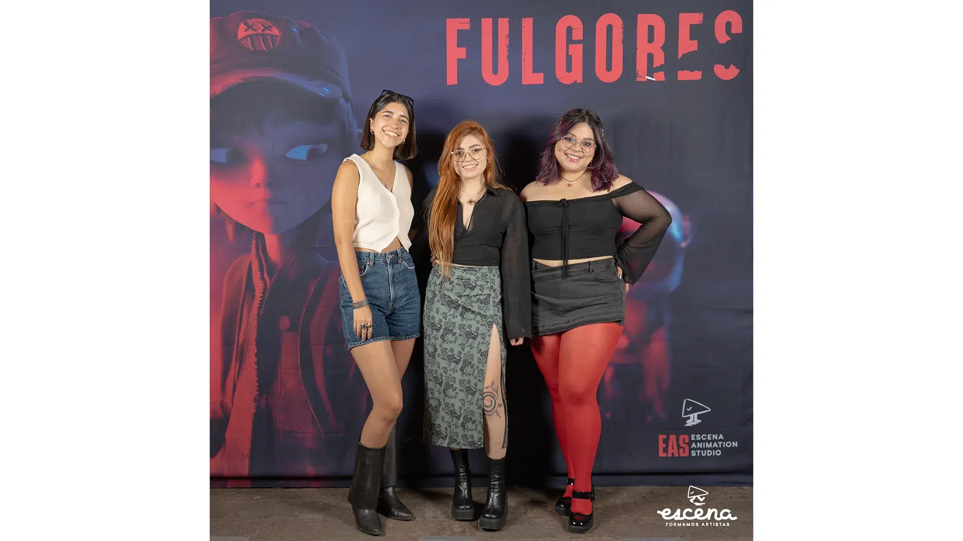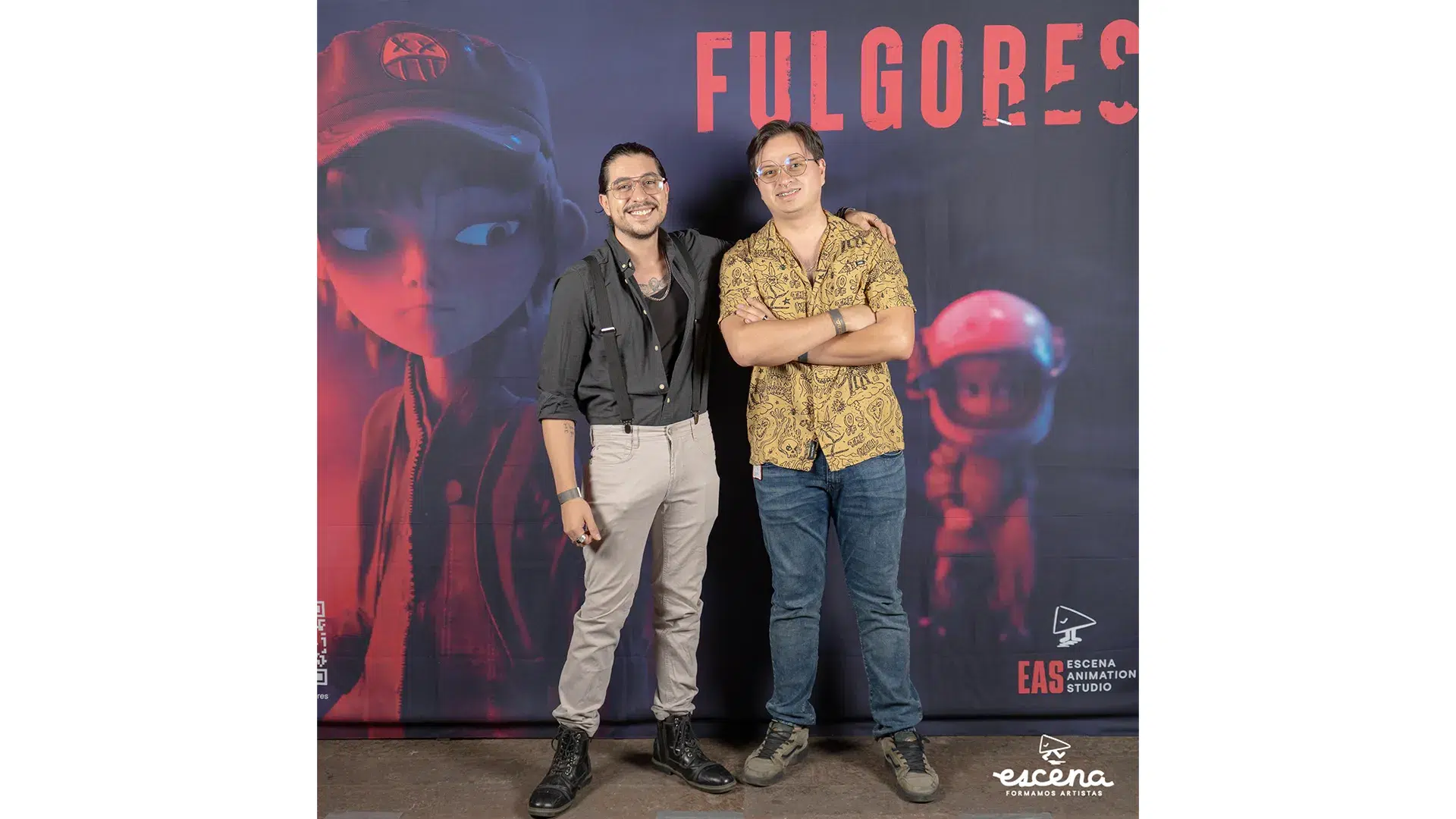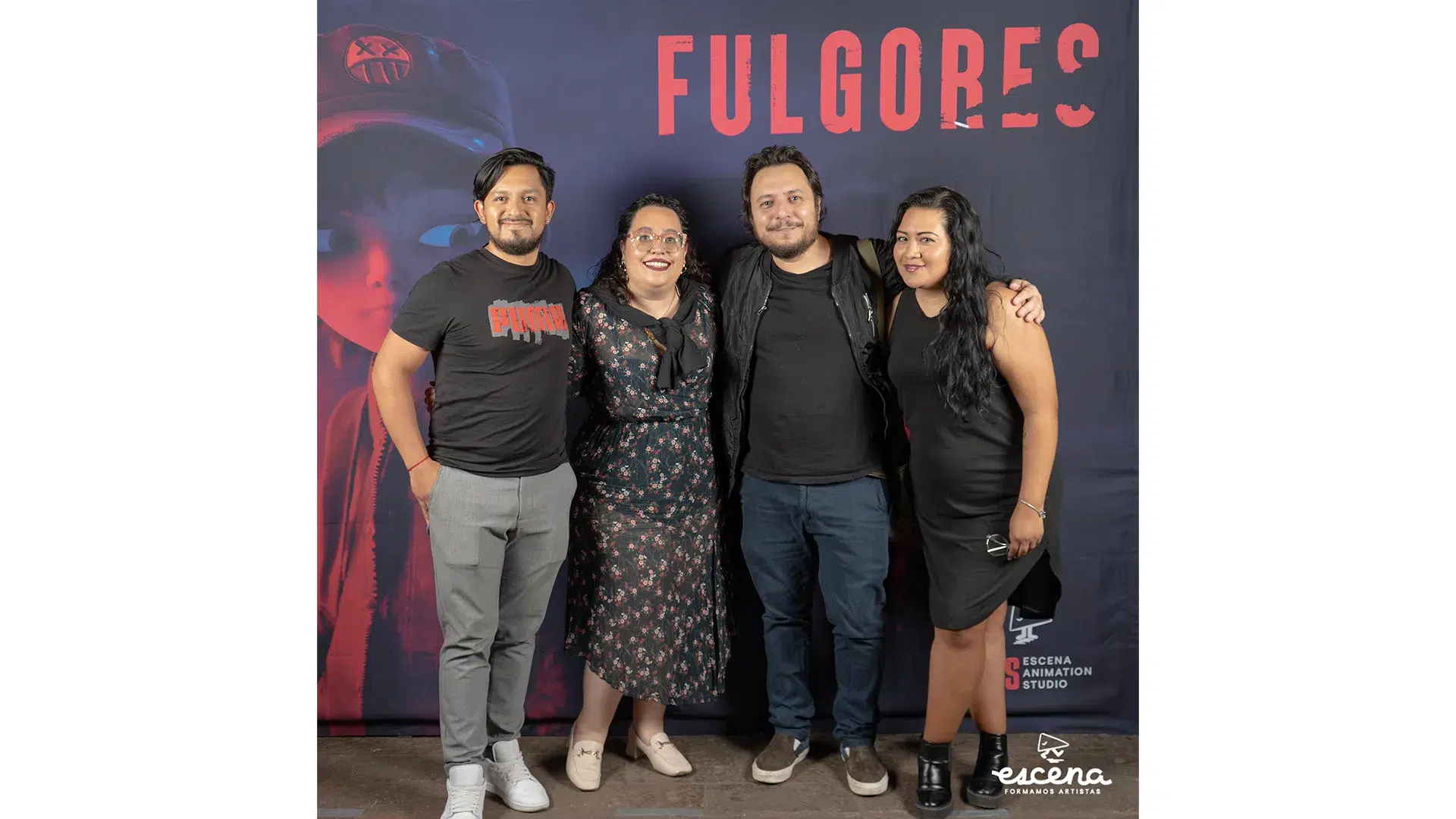 El evento contó con dos proyecciones: una dedicada al equipo de Fulgores y otra para el público general. En la proyección para el equipo, Andres Buzo y Andrés Palma pronunciaron palabras de reconocimiento y gratitud, destacando el esfuerzo, tiempo y energías invertidas por todos los involucrados. Fulgores representa una muestra palpable del modelo educativo de Escena, conocido como Aprendizaje Basado en Proyectos, en el cual los alumnos colaboran directamente con artistas profesionales, quienes también son profesores y miembros activos de la industria de la animación.